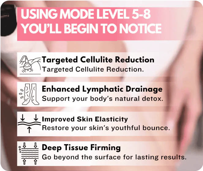 By working together, these technologies help stimulate circulation, target stubborn cellulite, and support your skin’s natural renewal process. With adjustable intensity levels, you stay in control of comfort while maximizing results.
